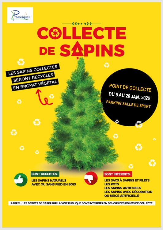 Comme chaque année après les fêtes, la Ville de Prémesques met en place une collecte de sapins de Noël naturels. Cette action s’inscrit dans une démarche de développement durable et de valorisation des déchets végétaux.