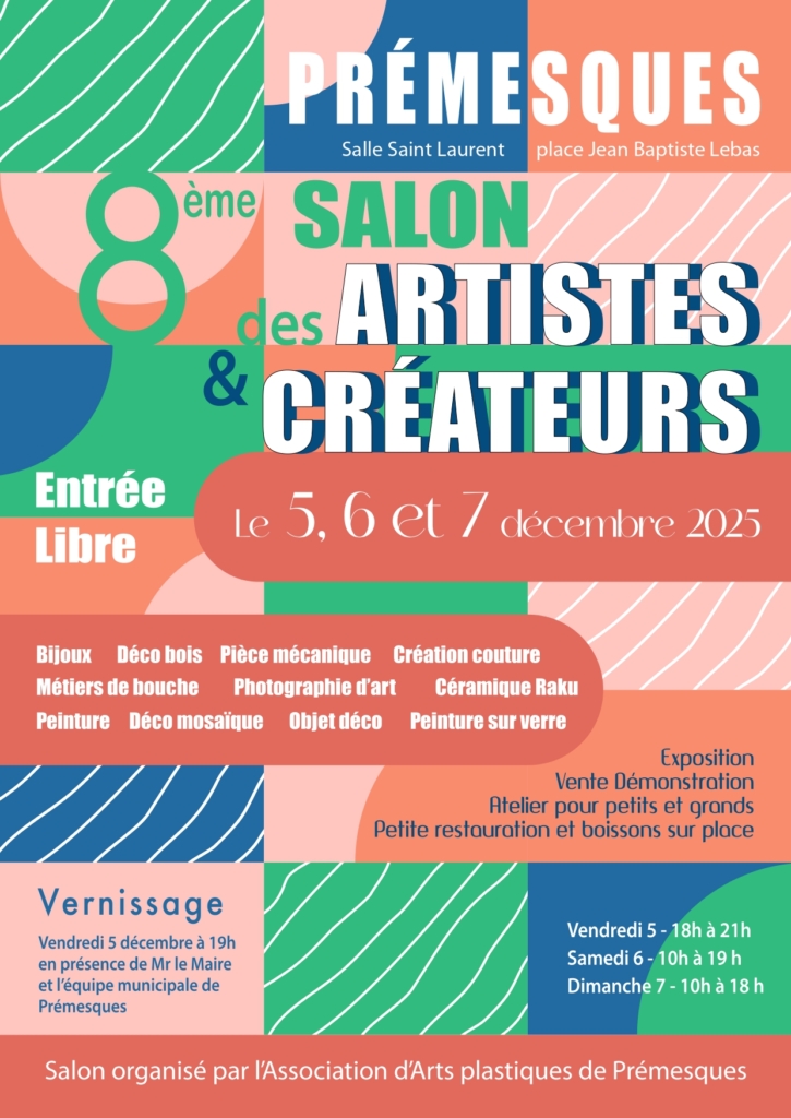 Venez nombreux découvrir des créations uniques, échanger avec les artistes et passer un moment inspirant et convivial à Prémesques !