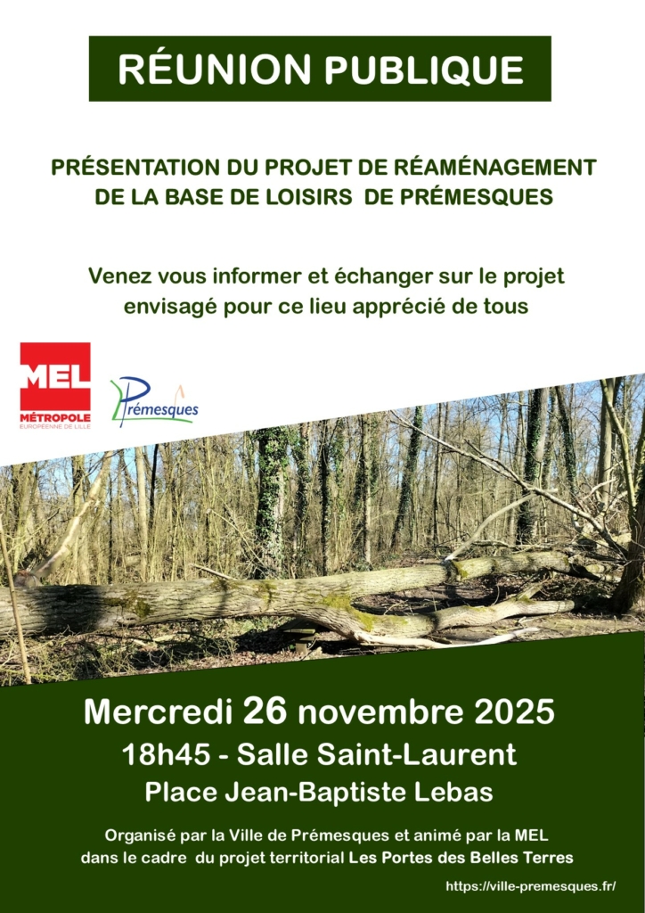 La municipalité a le plaisir de vous inviter à une réunion publique le mercredi 26 novembre à 18h45, à la salle Saint-Laurent, afin de présenter en détail le projet de réaménagement de la base de loisirs.