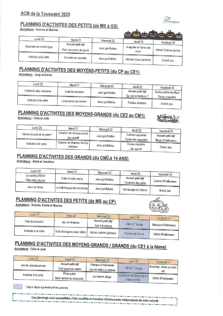 La Commune propose plusieurs accueils de loisirs durant l’année : en février, à Pâques, en juillet et à la Toussaint.